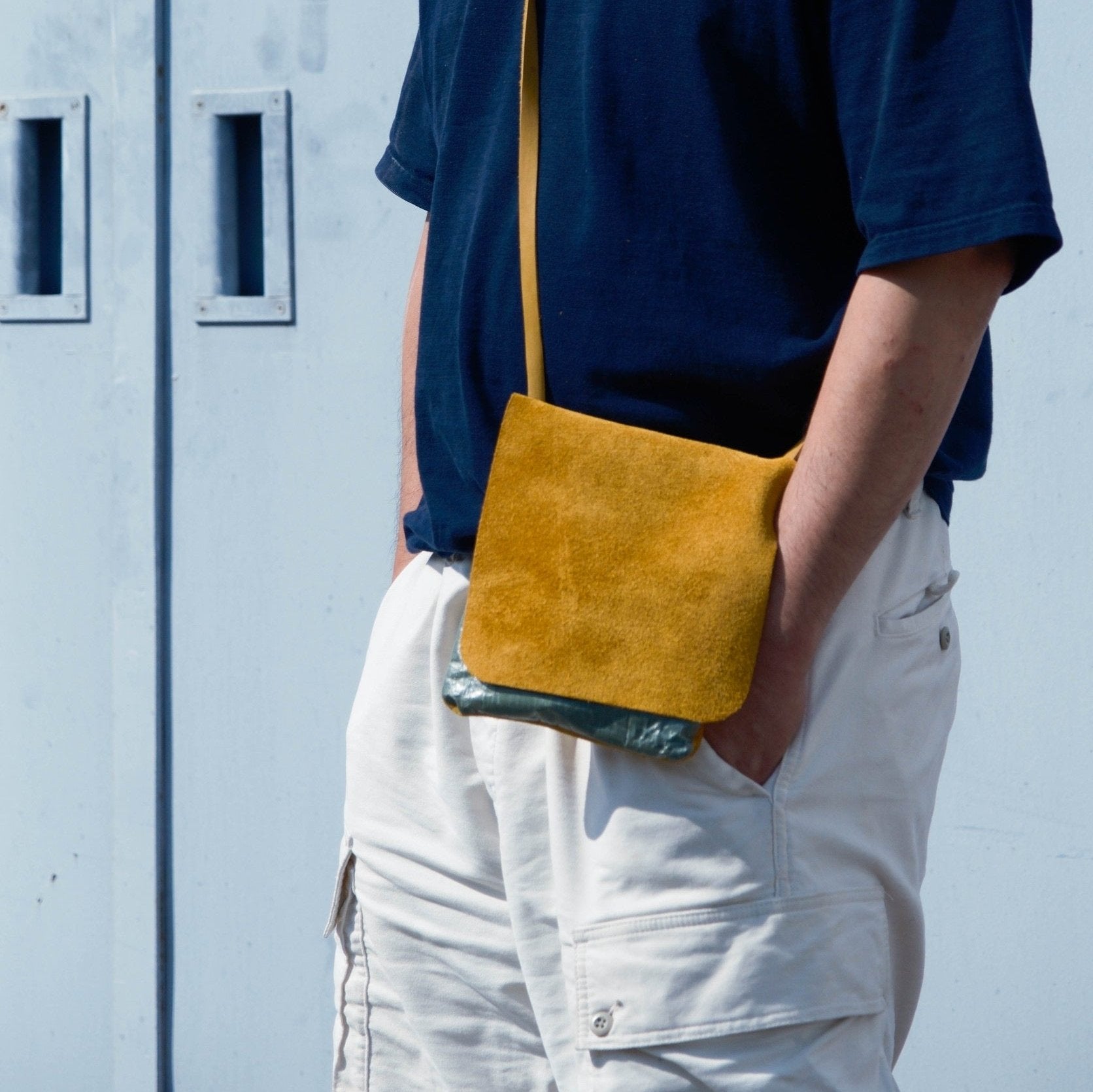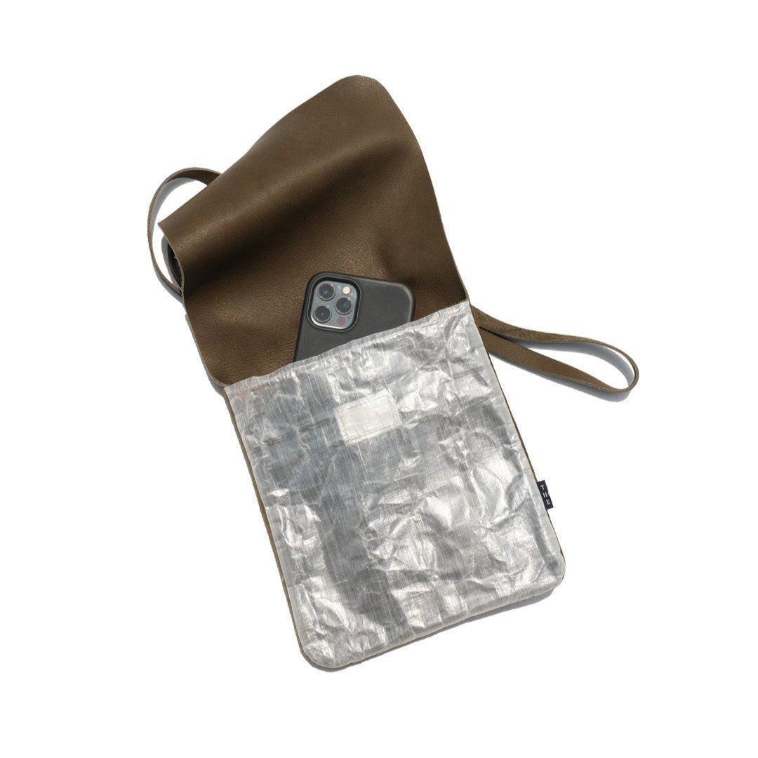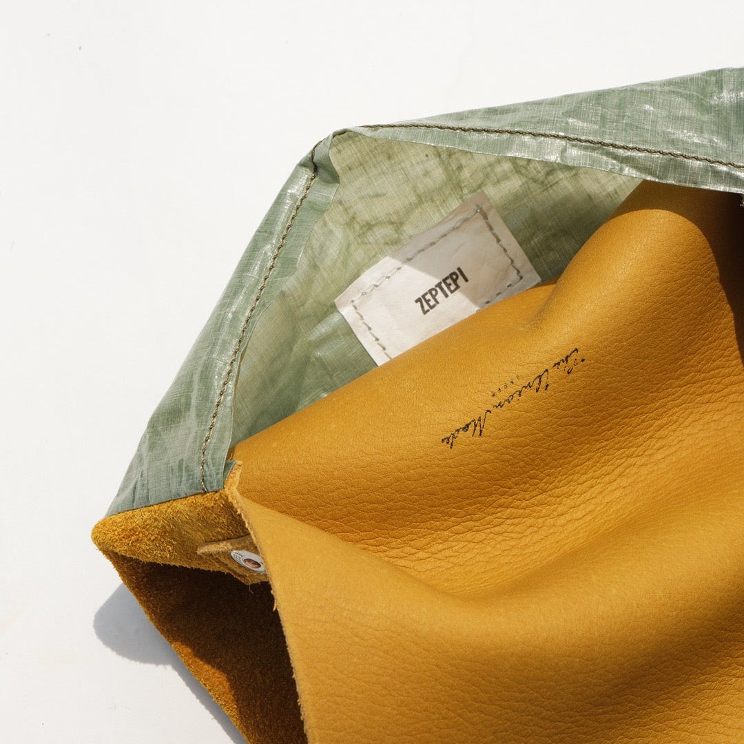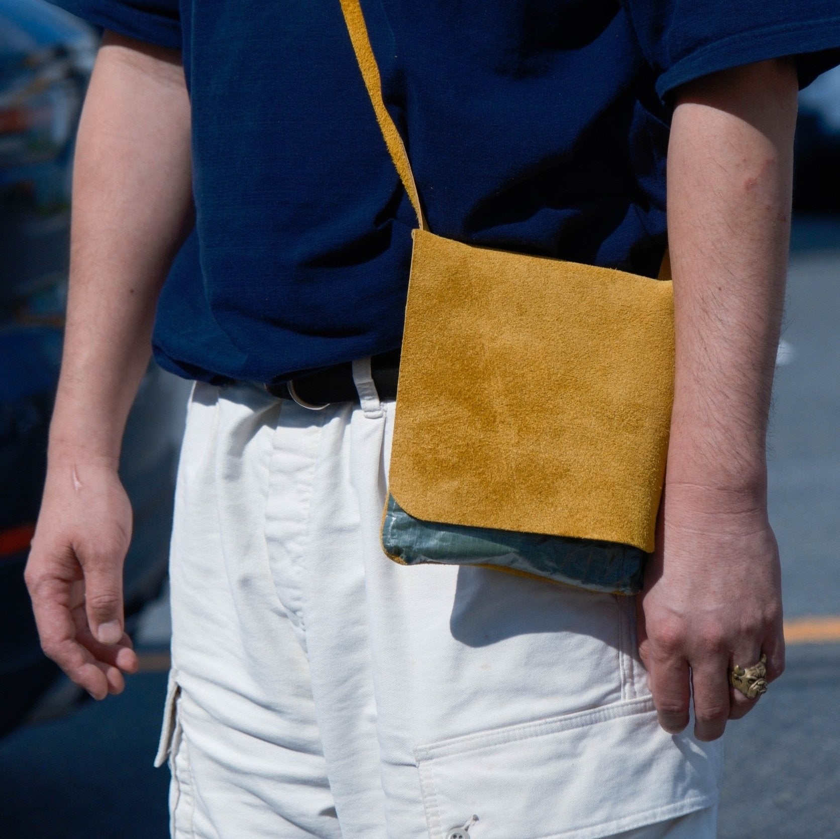 "ZEPTEPI" とコラボレーションのサコッシュです。 久しぶりの再リリースです。 表部は牛革のスエードで中のポケットの素材がキューベンファイバーになってます。 昔からリリースしている「キューベンファイバー×COWHIDE」のサコッシュと同じサイズ感です。